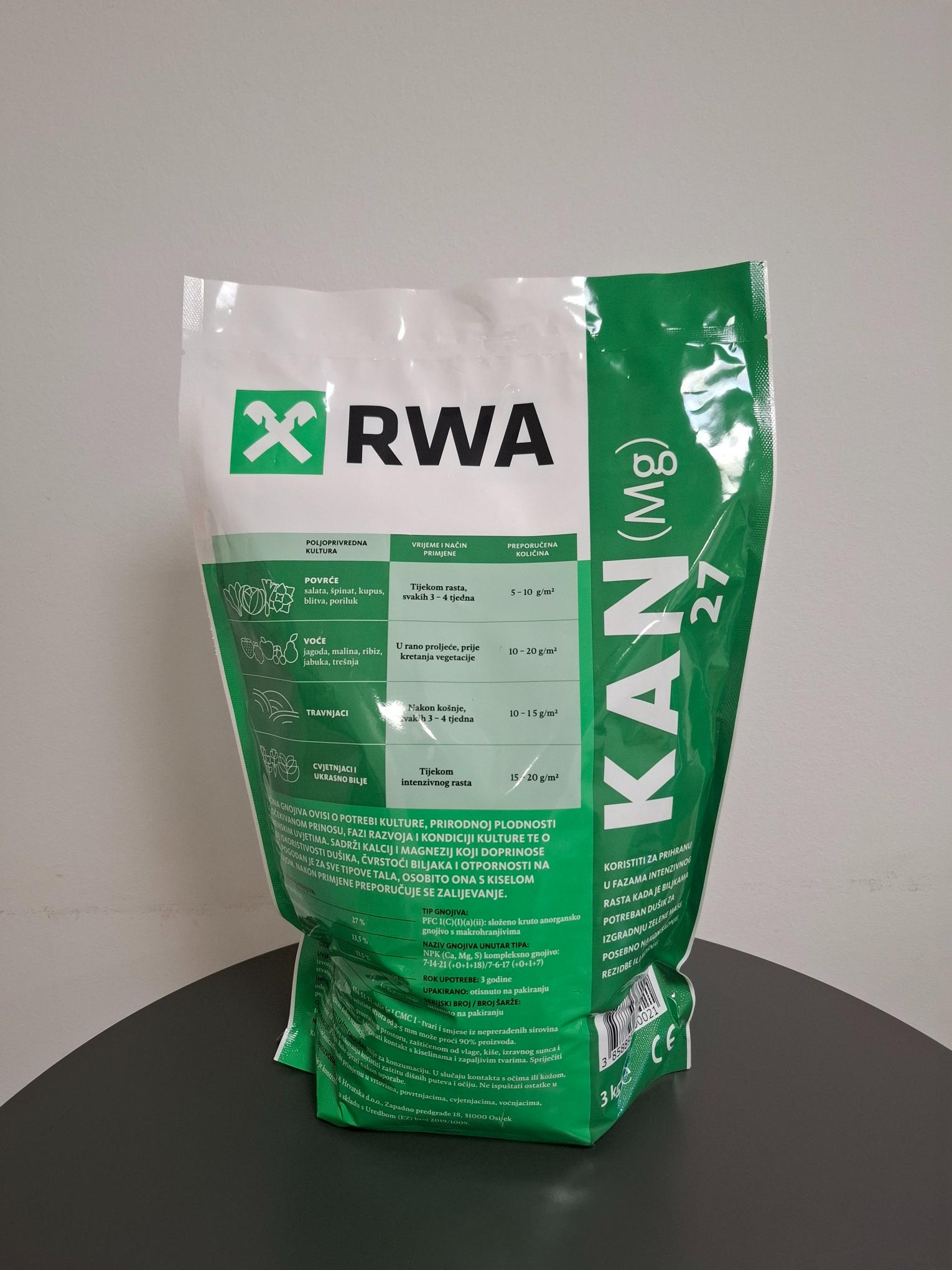 RWA gnojiva sada su dostupna i u manjim pakiranjima – idealno rješenje za kupce kojima velika profesionalna pakiranja nisu potrebna. Jednostavna su za transport, skladištenje i primjenu, a pritom zadržavaju istu provjerenu kvalitetu i učinkovitost kao i standardna pakiranja. Ova praktična pakiranja od 3 kg donose veću fleksibilnost i jednostavniju primjenu za manje površine, vrtove, okućnice i hobističku proizvodnju.