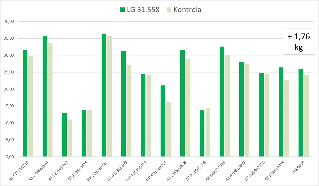 LG 31.558 (LGAN): 26,74 kg mlijeka / krava / dan